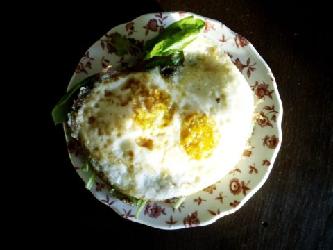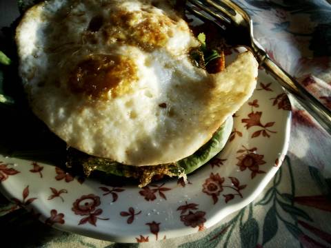 So I piled some spinach and cilantro and eggs atop toast with a hot red pepper sauce, sprinkled some salt, and admired the early evening light. How does it do that? Normal things become worth taking a second look.