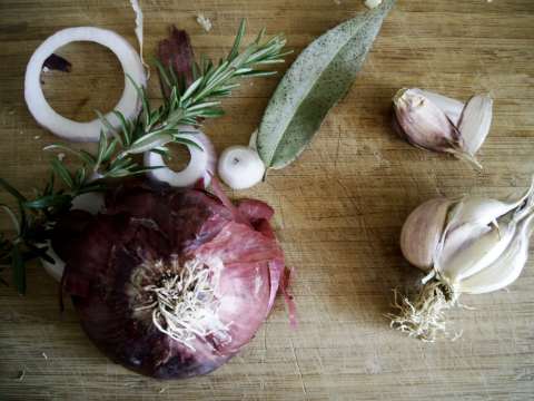Garlic and butter make so many things taste richer. I dug the garlic, and also snipped rosemary and basil from the farm last week. Came home smelling like a soup sachet.