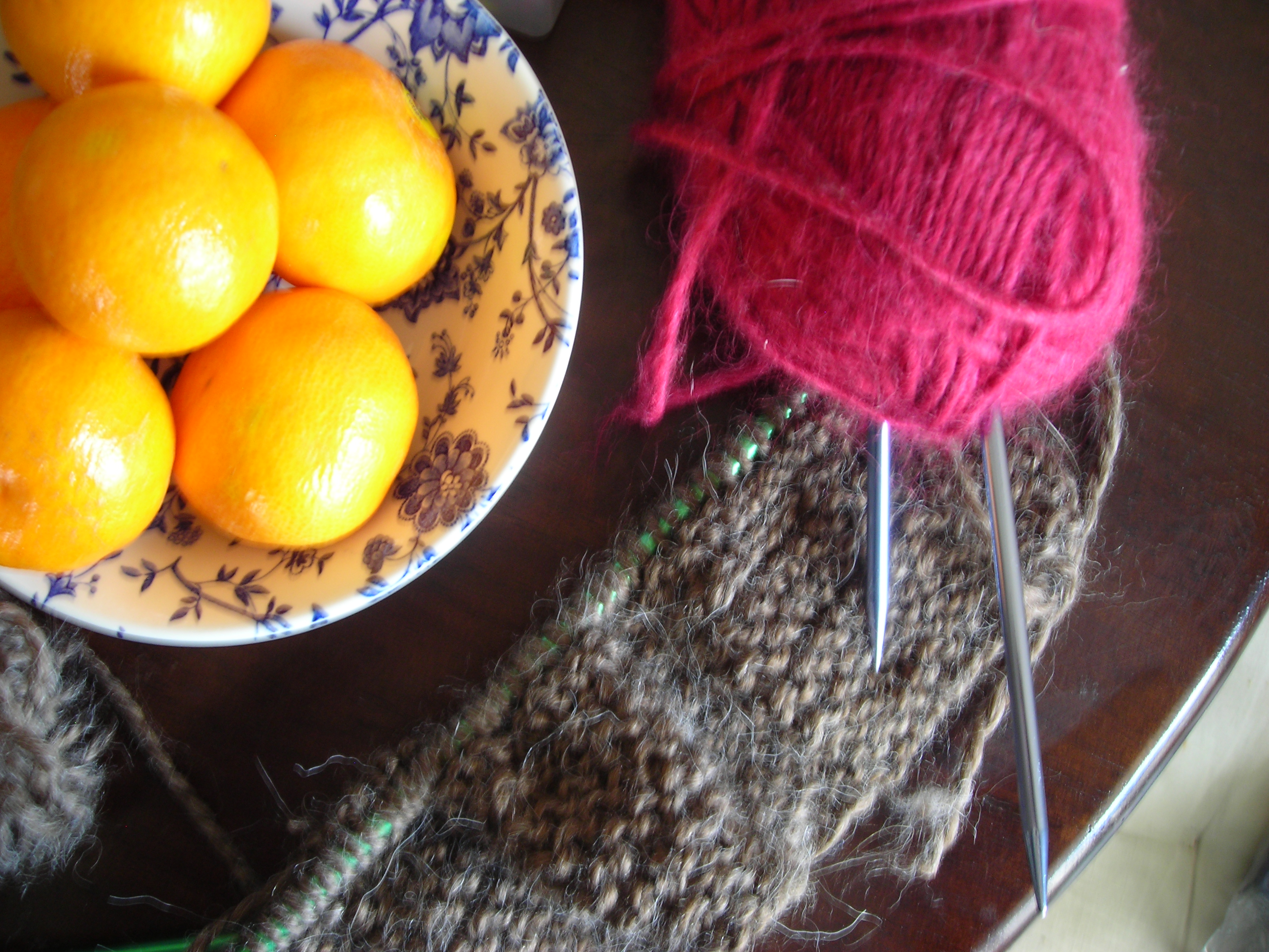 The day after our evening of crafts, I came home from the horse barn to see the remnants of our fun on the table. The late-morning light and the first clementines pulled everything together and I had to stop, to pause in that small bright moment. It was a good thing to come home to.