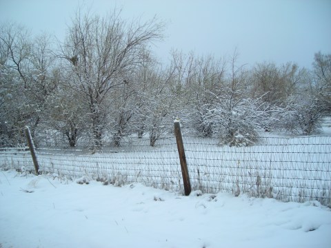 The snow is falling oh-so-lightly outside the windows. The wind seems to keep changing directions, making the flakes swirl and slide before reaching the ground. This is our third snow this season, and what good timing! Just as we enter the month of sleigh bells and red ribbon and evergreens. It seems only right for the trees and fences to be edged in white.