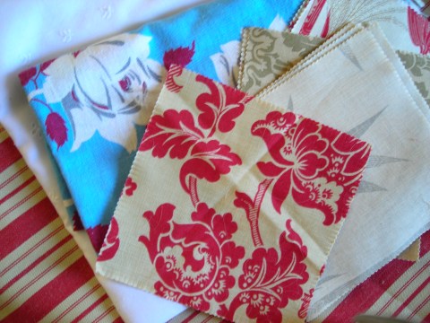 Then we selected fabrics and ornaments, and tried out a few arrangements until we discovered what we liked best. Instead of traditional red and green, we favored silver, blue, white, a little red, and a little brown.