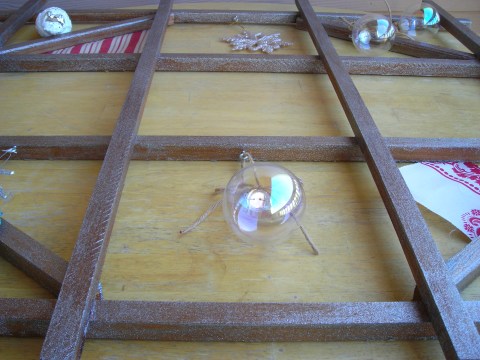 Have you all seen that Home Depot commercial? The one where you take an old, empty window frame, paint it red, insert c-hooks, hang ornaments, and place the finished product on your fireplace mantel? I must have seen it about a hundred times, and kept thinking how fun it was.
