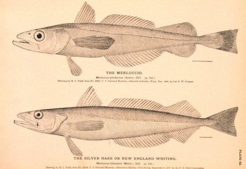 Tagged: fish, merluccio, New England whiting, silver hake, sketch