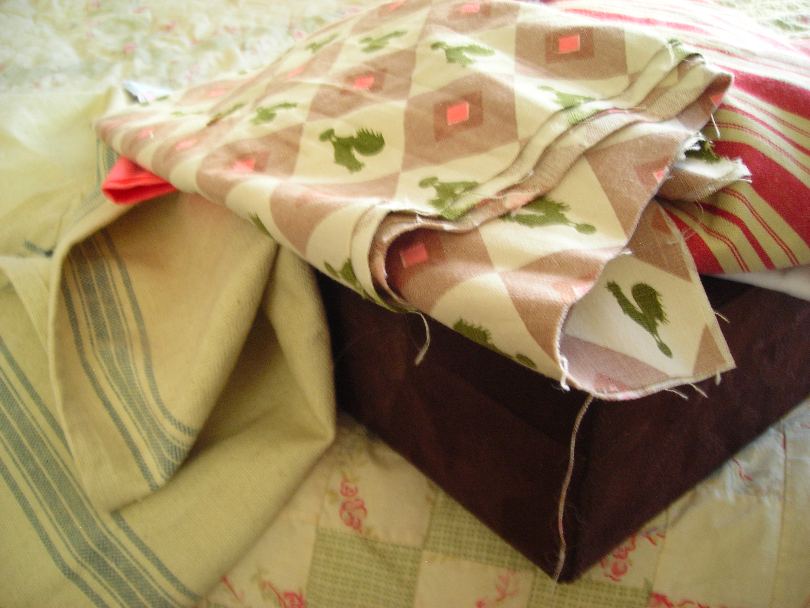 After washing the bucket lid, I covered it in fabric, just tucking the ends under so that I can reuse the fabric for something else later, if i want to.