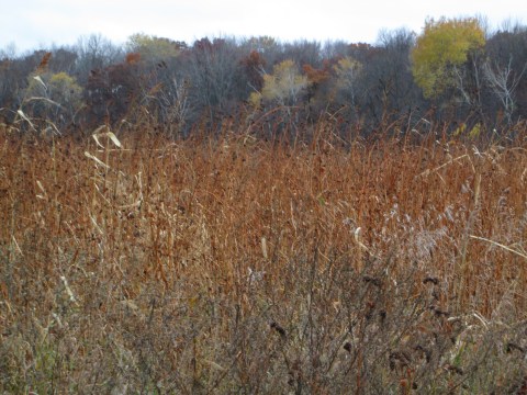 But there are yet colors to earn attention here. The rust-orange of leaves. Grasses and forbs within a few shades of my golden retriever’s coat. The slate and gray and cool blues of sky. That sky against the shape of trees and the slopes of wheat-colored hills.