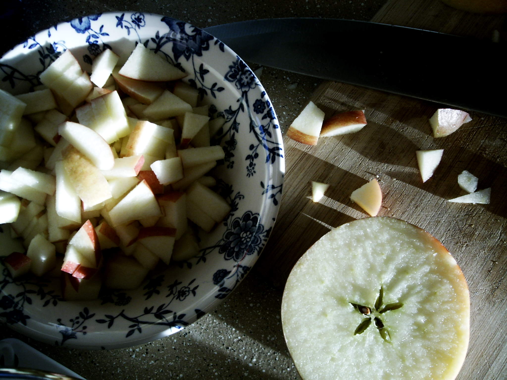 Apple cinnamon muffins happened because I had the right ingredients in the house. Also, the apples I’d gotten from the supermarket were all right but really would taste better baked into something.