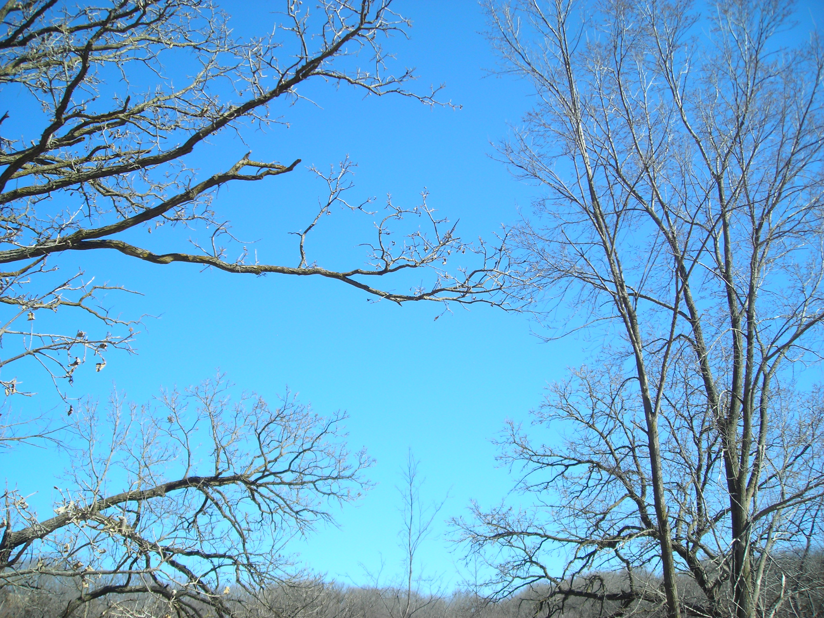 The sky stayed gray-white-blue today in the cover of clouds, until night fell and hid them away. On our walks through the woods, the lines of the tree trunks draw my eyes upward, to where I can see the silhouettes of the trees’ crowns against whatever color the sky happens to be. Today I found myself centered beneath several trees whose fine, small, tip-of-their-fingers branches reached out and overlaid one another, multiple times, so that above me I saw a kind of cobweb, or lace, hung in that space, woven of wood. I wish I could describe it for you better, all those black lines crossing so delicately over one another, so clearly defined against the white of sky. You would understand why there are stories of dryads. You would understand why humans are compelled to create art, tulle-lush tutus, tapestries, linens with fine embroidery, filigree. We want to be of such things, to re-speak them, to be connected with them somehow.