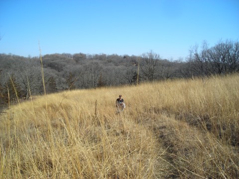 It is hard to find nature-walk places in this part of the state, I am sorry to say. We drove 24 miles to get to Fox Ridge Prairie, 790 acres that “exemplifies the northern loess bluffs of western Iowa with a mixture of oak timbered valleys, native prairie ridge tops and west facing slopes.” (mycountyparks.com)