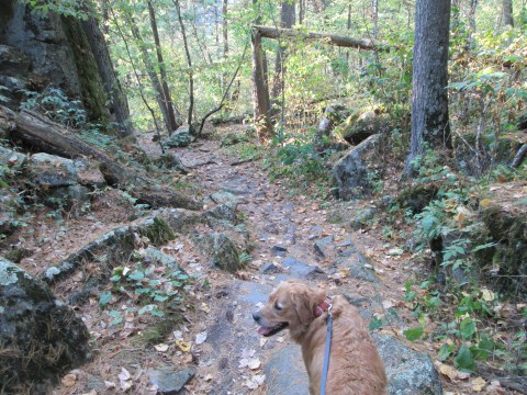 Tassie did not get to come (I wasn’t sure what the dog policy was, but based on the number of paw prints we saw, plus one black Lab, they do seem to be allowed). Mom and Dad and Craig and I went with a backpack full of egg salad sandwiches, string cheese, and apples.
