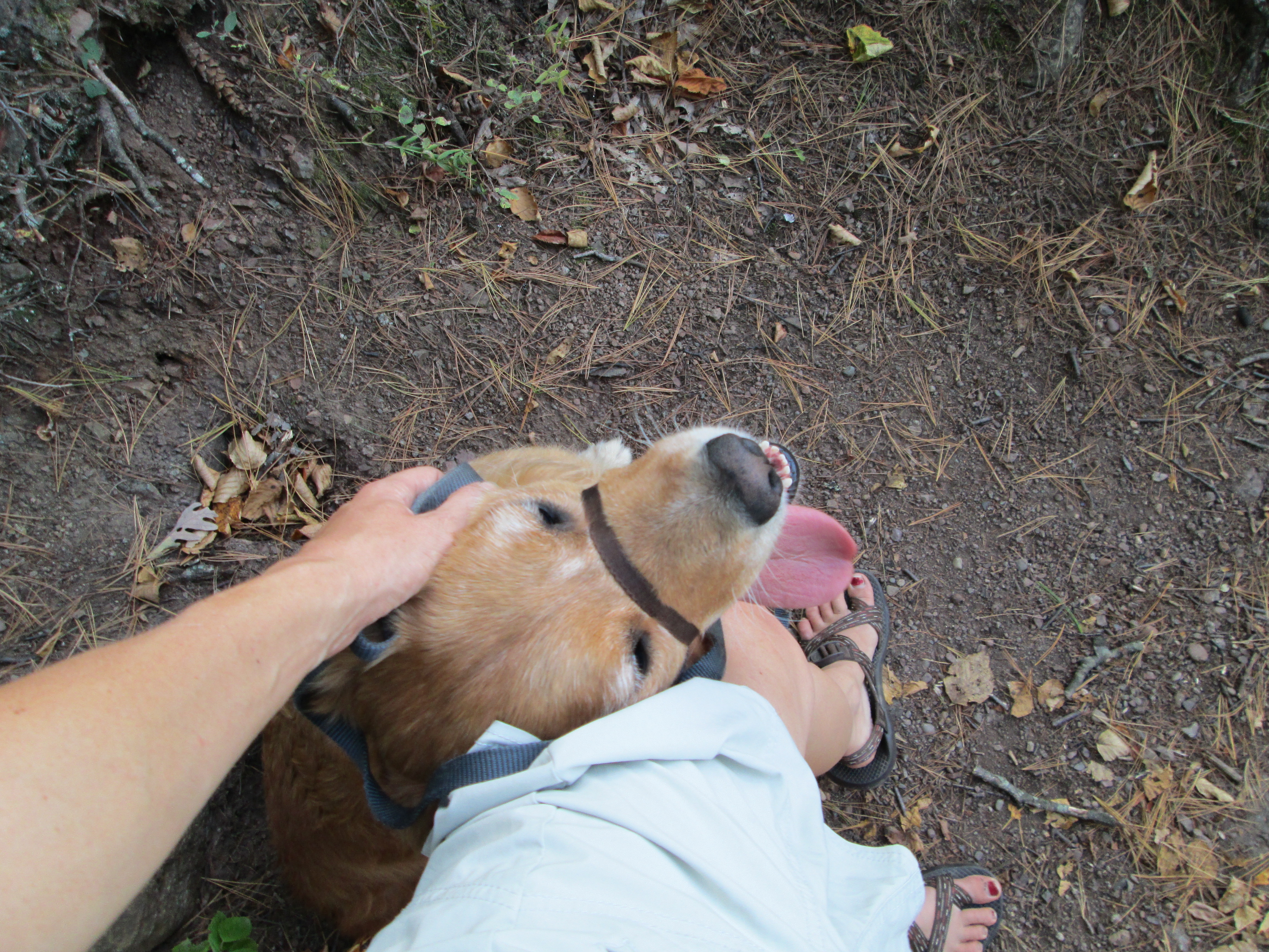 We wandered back down the trail to another along the Lake of the Dalles, listening to children play at the beach and the shouts and conversation of kayakers. I tried to sit on a rock and read, but a certain golden retriever kept trying to pull me into the water.
