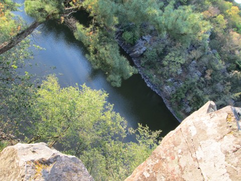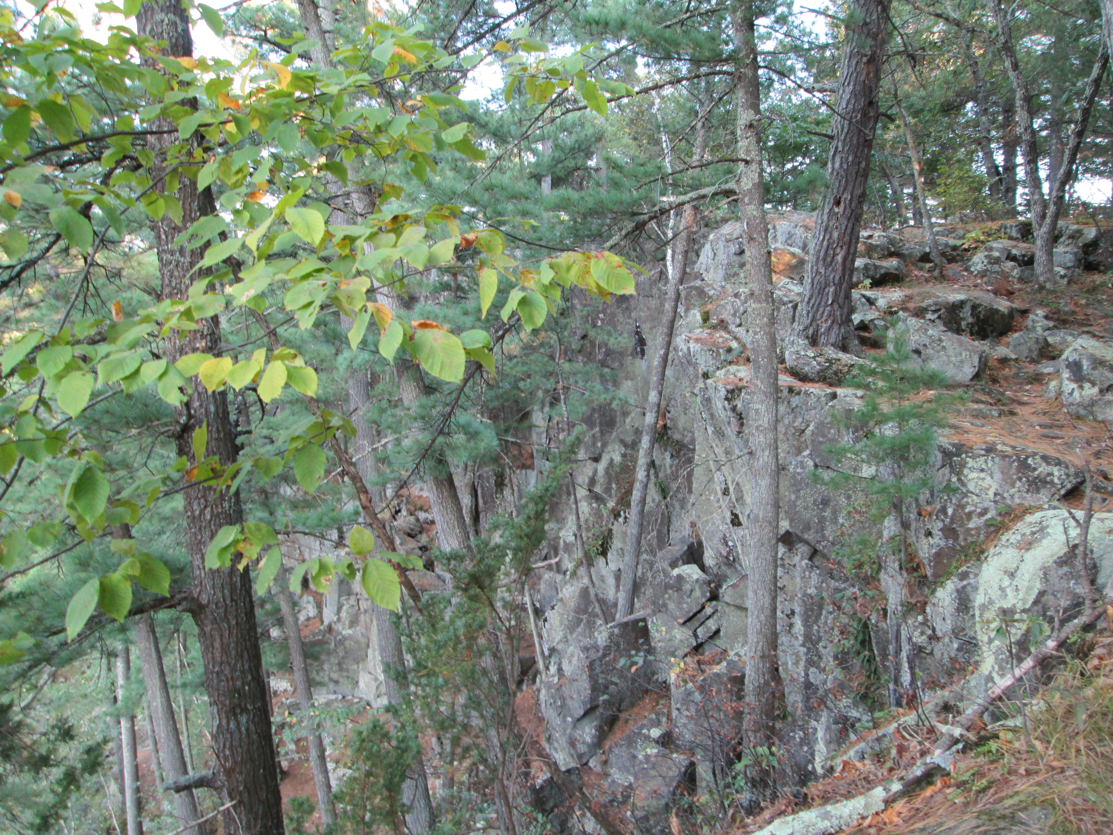 Interstates Park (the states being Minnesota & Wisconsin) is full of climbable rocks, trails along the St. Croix River, a small lake, and many trees.