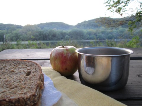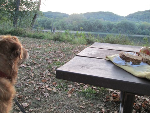 So, we made our way down to the pet-friendly picnic area and watched the mist and the evening settle over the St. Croix.