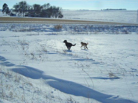 The nice thing about rural areas? Hardly-traveled dirt roads. Ditches and fields. Places for dogs to be off the darn leash without all sorts of regulations.