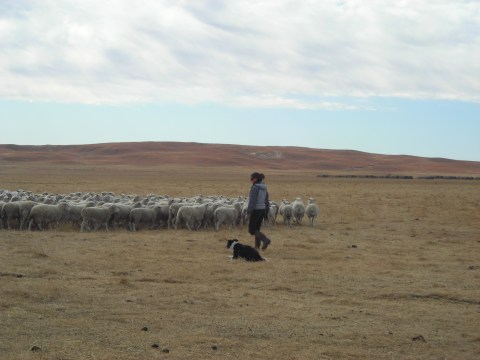 Muñeca is my friend Mae Rose’s canine companion at the ranch when she goes out to see to the sheep. The 8-month-old border collie could scarcely hold herself back as we approached the herd – though, good girl, she stayed with us on the four-wheeler until bid otherwise. This is the look she gets on her face: sheer determination. To her, sheep must be herded, and by golly, she is the one who should do it.