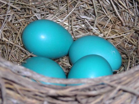 I came across them in a nest tucked just inside the doorway of an unused shed, when I was bicycling around this afternoon taking photos of our farms. The mother robin flapped outside the moment I set a foot in the door – well, I did thump in heavily, as I was avoiding bristly weeds. And then I saw her nest, and peered in hopefully. There they were.