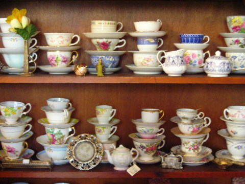 The house is just as Victorian as you would expect, with an excess of floral decor, lace curtains, trinkets and towers of teacups. When you enter, you’re invited to sign in to the giant guest book, then visit the powder room to select what you like from the gloves, hats, stoles, and pearls. Once you’ve donned your fancy duds, you’ll walk through the parlor to the sunny tea room, remove your gloves, and be offered a steaming scented hand towel for washing your hands. The towel is essential, since Victorian teas consist primarily of finger food.