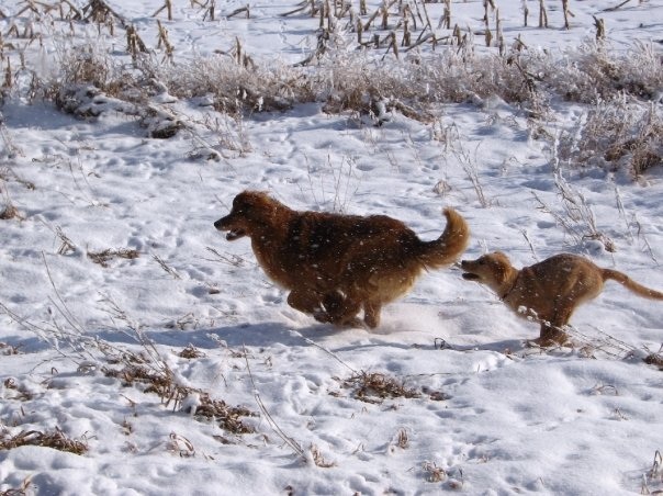 2008: Little T with Elsie, our very beloved family dog. Only a few more winters would Elsie-girl run like this! (Though my heart believes she bounds through heaven now.) And Tass, well, she was just discovering the joy of running. Particularly after a good old dog who meant to leave her in her wake.